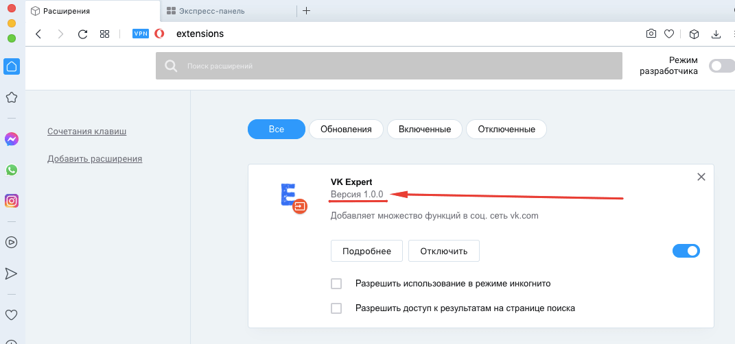 Как обновить расширение VK Expert в браузере Opera